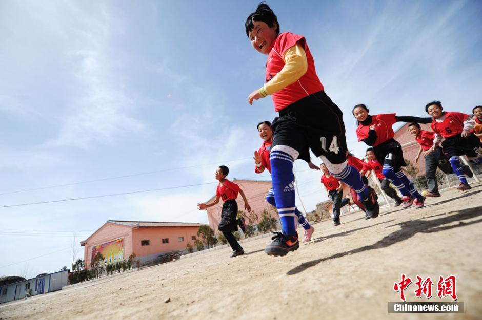 Despite the harsh conditions, the students play football happily in the rough playground with swirling dust. (CNS/Yang Yanmin)