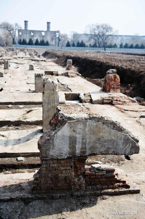 Photo taken on April 9, 2015 shows building remains at the preliminarily cleaned core area of the site of the Japanese Unit 731 troop in Harbin, capital of northeast China's Heilongjiang Province. Unit 731 was a biological and chemical warfare troop set up in China by the Japanese invaders during World War II. The clearing process in the Unit 731 site's core area, which consists of a bacteria lab and a prison used to keep people for biological experiments, will be open to the public around the 70th anniversary of China's victory in World War II and the Chinese People's War of Resistance Against Japanese Aggressions this year. (Xinhua/Wang Jianwei)