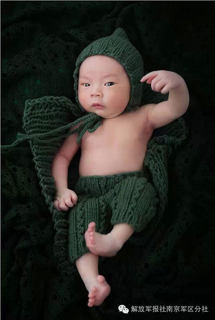 A boarder guard officer in Tibet takes a series of photos for his newly born son before he goes back to the army. (WeChat of PLA Daily/Deng Kunpeng)