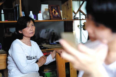 | May 22, 2014 - Lu watches Liu Ting putting on make-up,. (Photo/Beijing News) |