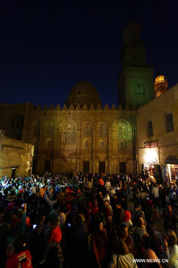 Egyptians visit the Al-Moez Street, which is one of the oldest streets in Cairo, as celebrating the World Heritage Day, in Egypt, on April 18, 2015. (Xinhua/Ahmed Gomaa)