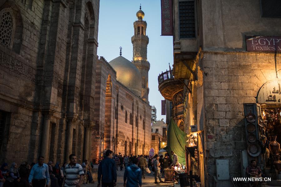 Egyptians visit the Al-Moez Street, which is one of the oldest streets in Cairo, as celebrating the World Heritage Day, in Egypt, on April 18, 2015. (Xinhua/Pan Chaoyue)