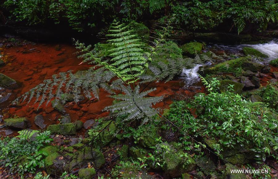Photo taken on April 19, 2015 shows a scene of Chishui Danxia Landform scenic zone in Chishui, southwest China's Guizhou Province. Danxia landform, a unique type of petrographic geomorphology, could be defined as "landform consists of red bed characterized by steep cliffs." (Xinhua/Liu Xu)(mcg)