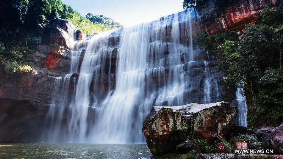 Photo taken on April 19, 2015 shows a scene of Chishui Danxia Landform scenic zone in Chishui, southwest China's Guizhou Province. Danxia landform, a unique type of petrographic geomorphology, could be defined as "landform consists of red bed characterized by steep cliffs." (Xinhua/Liu Xu)(mcg)