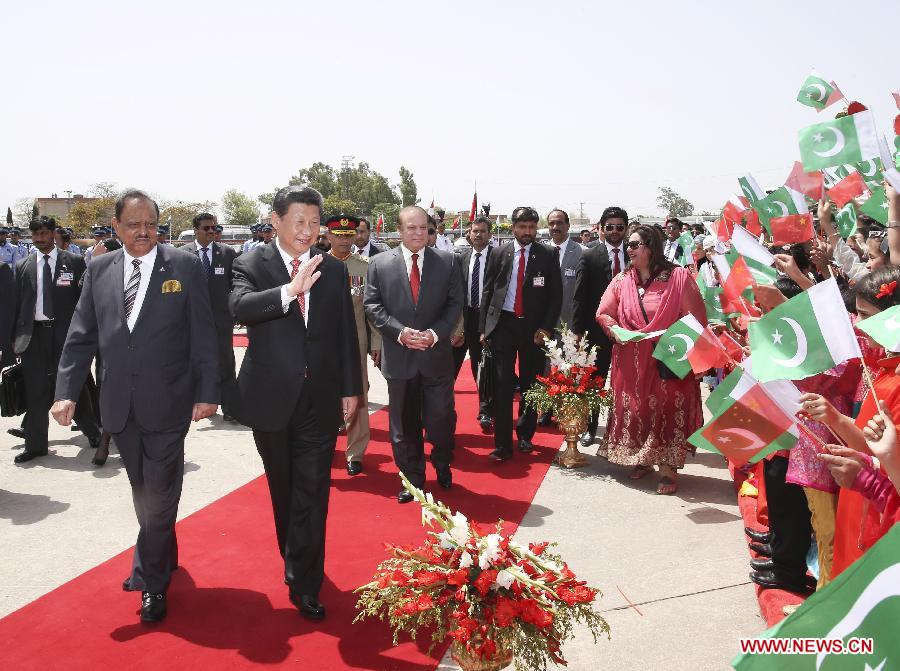 Chinese President Xi Jinping (front, R) attends a welcoming ceremony held by Pakistani President Mamnoon Hussain and Prime Minister Nawaz Sharif in Islamabad, capital of Pakistan, April 20, 2015. (Xinhua/Lan Hongguang)