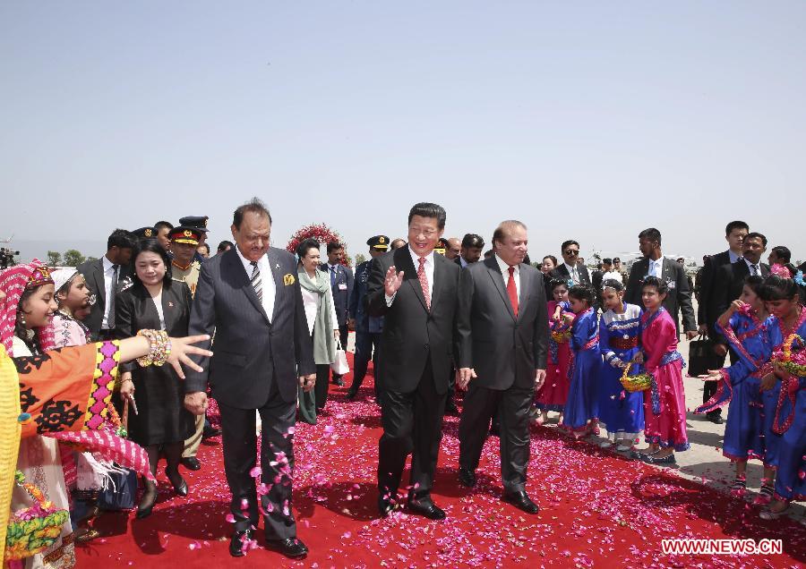 Chinese President Xi Jinping (C) attends a welcoming ceremony held by Pakistani President Mamnoon Hussain and Prime Minister Nawaz Sharif in Islamabad, capital of Pakistan, April 20, 2015. (Xinhua/Lan Hongguang)
