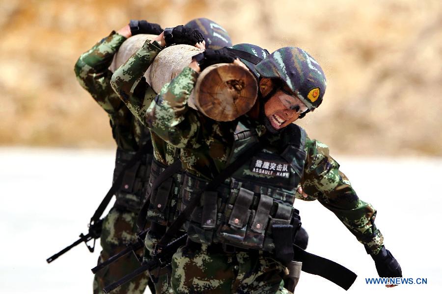 | Chinese paramilitary personnel participate in the seventh Annual Warrior Competition at the King Abdullah II Special Operations Training Center in Amman, capital of Jordan, on April 21,2015. (Xinhua/Mohammad Abu Ghosh) |
