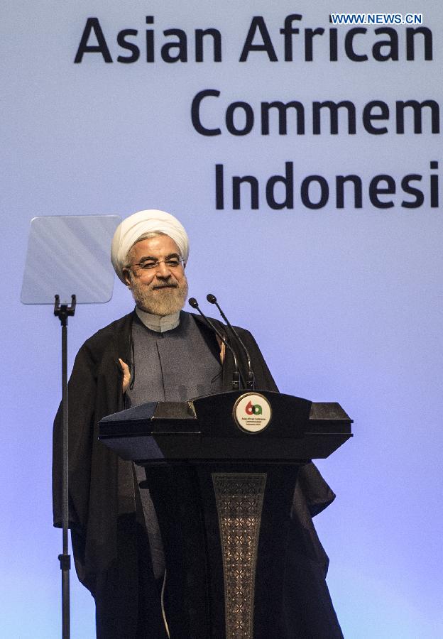 Iranian President Hassan Rouhani speaks during the Asian-African Summit in Jakarta, capital of Indonesia, on April 22, 2015. The summit is held here Wednesday. (Xinhua/Lui Siu Wai)