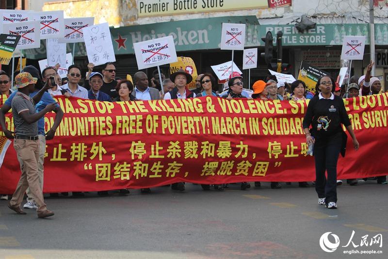 Thousands of South Africans and foreigners rally against violence and xenophobia, at Johannesburg CBD, South Africa on April 23rd, 2015.(People’s Daily Online/Wang Yuran)
