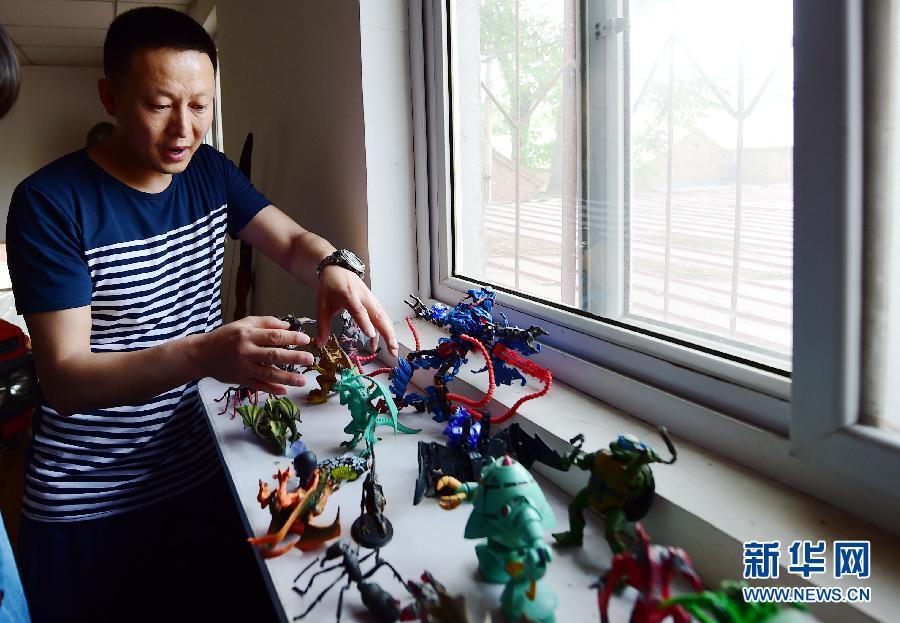 Lu Peng finds inspiration from the toys. (Xinhua/Zhang Chenlin)