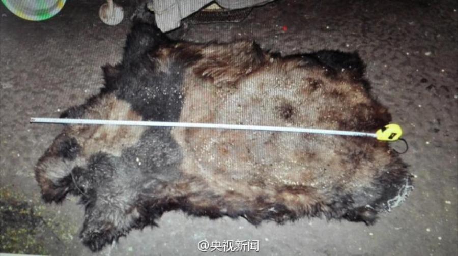 A piece of panda skin. Police in Southwest China's Yunnan province have detained 10 suspects involved in killing a female giant panda and selling its meat. Police also seized panda fur, 9.75kg of meat, four bones, and one gallbladder in Yanjin county, Zhaotong city of Yunnan province last December. Endangered pandas are a first-class protected animal in China and beloved around the world for their striking black and white coats and charming behaviour. (Photo/Weibo of China Central Television)