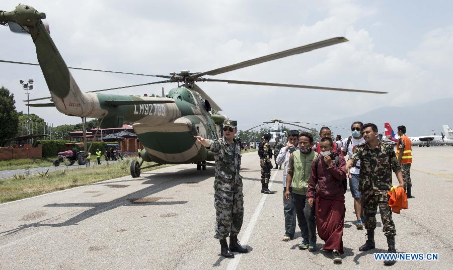Chinese military helicopters evacuate 108 people from Nepal's quake-stricken areas in one day (2)