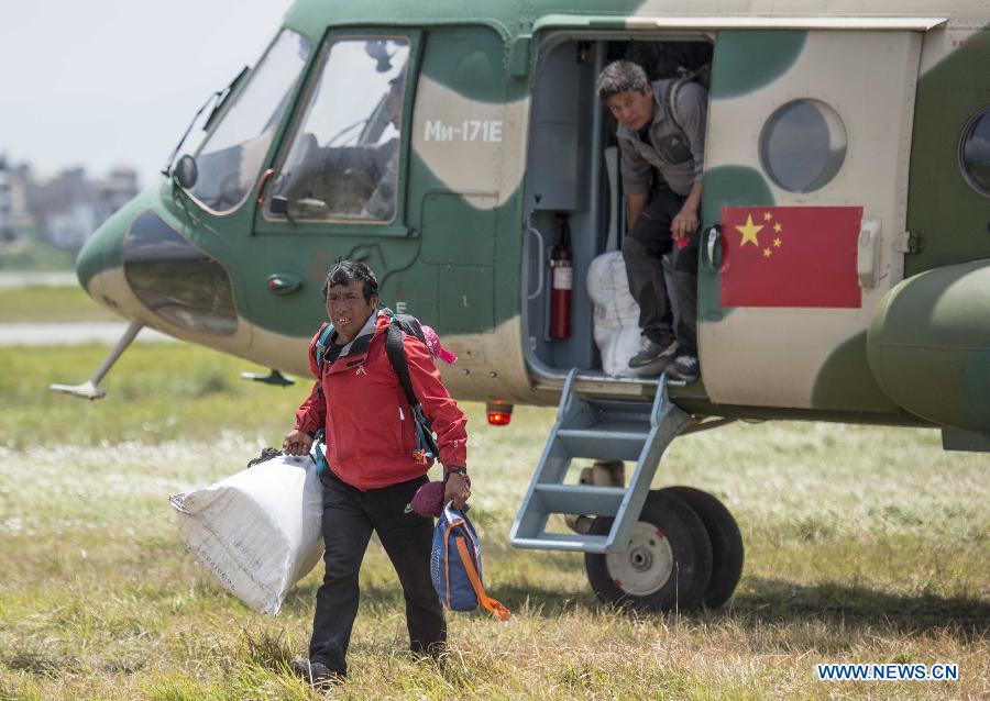 Chinese military helicopters evacuate 108 people from Nepal's quake-stricken areas in one day (5)