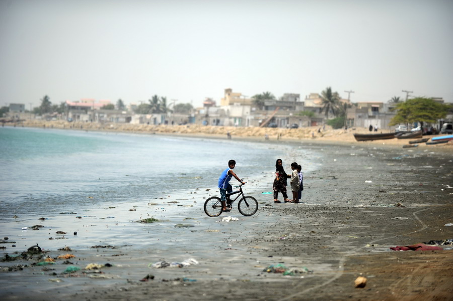 Children play on the beach in Gwardar, in Balochistan province, southwest of Pakistan. (Xinhua/Huang Zongzhi)