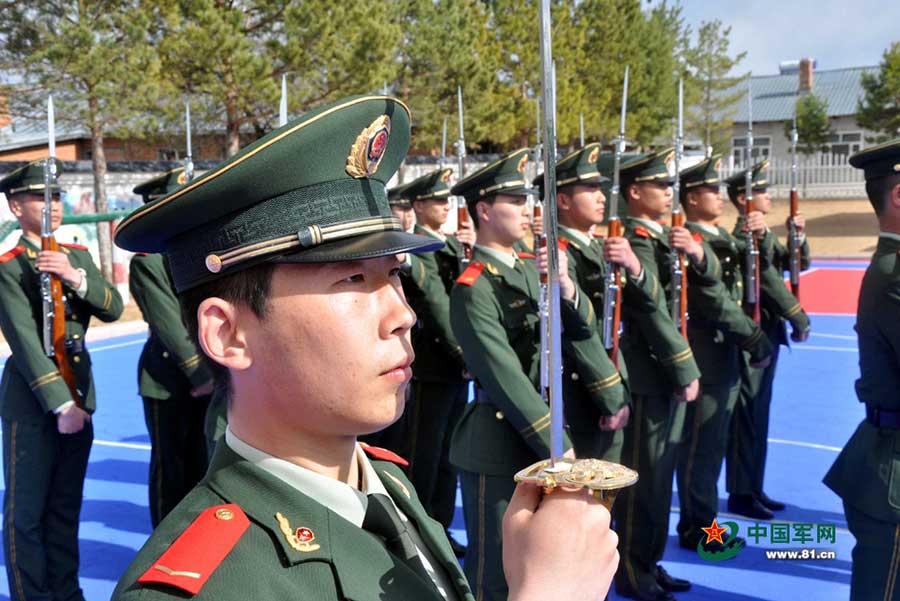 | The photo taken on May 7 shows soldiers of Chinese People's Armed Police Force stationed at Beiji village, China's northernmost Mohe County, holding daily drills. The average age of these soldiers is under 20.(81.cn/Photo) |
