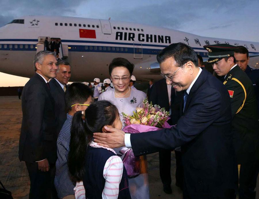 Premier Li Keqiang arrives in Brasilia, the capital of Brazil on the afternoon of May 18 local time to kick off his official visit to Latin America. (Photo/gb.cri.cn)