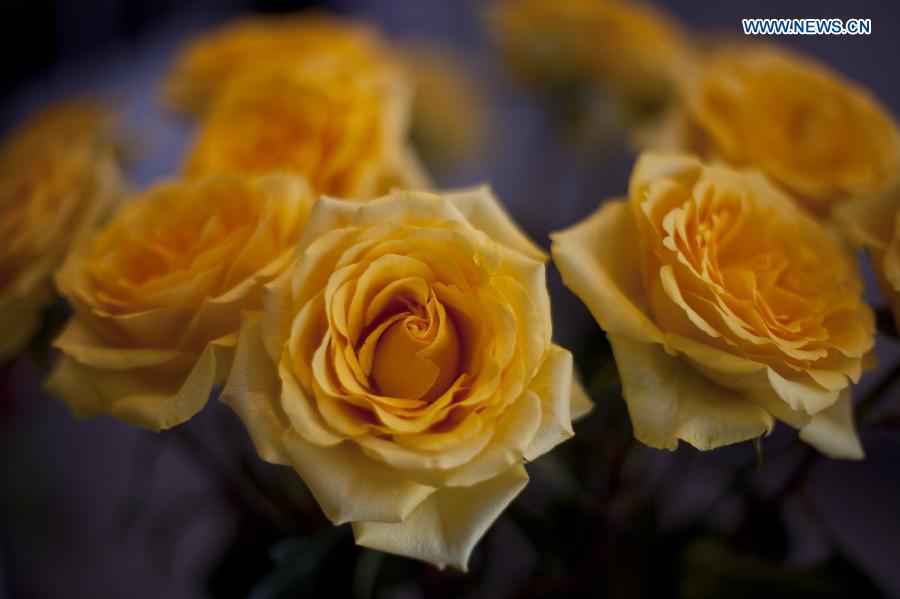Image taken on Feb. 6, 2012 shows yellow roses at a greenhouse near Bogota. Colombia is the second largest producer of flowers in the world and it has the greatest variety with more than 1,500 flowers identified. Chinese Premier Li Keqiang started on May 18 his nine-day Latin American trip including Brazil, Colombia, Peru and Chile. (Xinhua/Eliana Aponte)