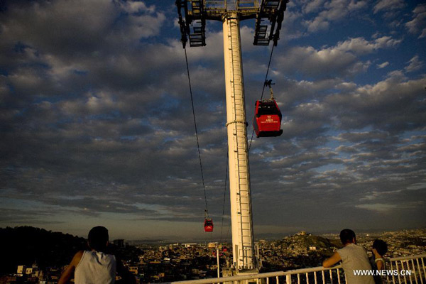 | Image taken on June 29, 2013 shows people travelling by a cable car in Rio de Janeiro, Brazil. The tourism in the Americas increased significantly in 2014. Chinese Premier Li Keqiang will visit Brazil, Colombia, Peru and Chile on May 18-26. (Xinhua/Guillermo Arias) |