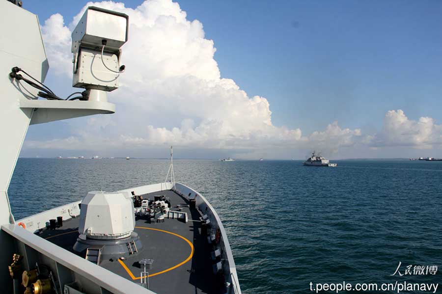 Chinese missile frigate Yulin arrives in Singapore on May 18. (People.com.cn/Photo)