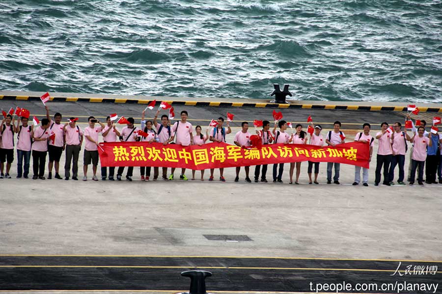 Chinese missile frigate Yulin arrives in Singapore on May 18. (People.com.cn/Photo)