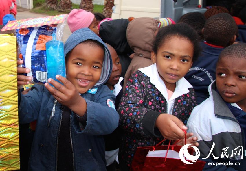 | Children show out the gifts they get for Children’s Day, at Baphumelele Orphanage, Cape Town, South Africa. (People’s Daily Online / Zhang Jiexian) |
