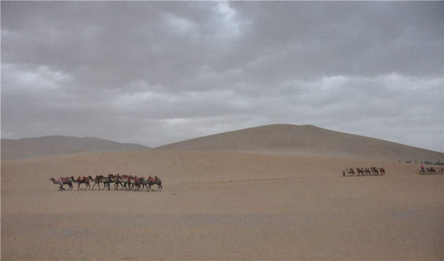 The Crescent Moon Spring is located at Mingsha Hills in the center of Dunhuang, northwestern China’s Gansu province. The Spring is an oasis in Gobi desert, and is surrounded a lot of sand dunes. The Mingsha Hills are named for the sound of the wind whipping off the dunes. (People’s Daily Online/Zhang Yuan)