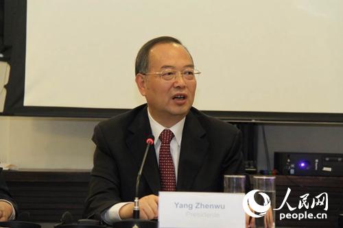 | President of People's Daily Yang Zhenwu delivered a keynote speech during a dialogue in Rio de Janeiro. (Photo/ People. cn) |