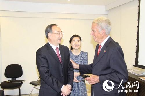 | Yang Zhenwu, President of People's Daily, talks with a China expert.(Photo/ People.cn) |