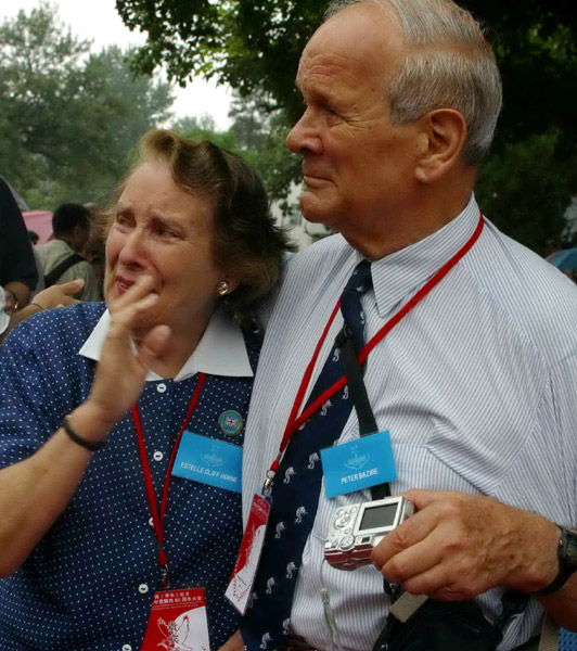 Estelle Cliff Horne and another former internee are unable to hold back tears when recalling the years they spent at the Weihsien camp in Shandong province. The pair are pictured during a visit in 2005. JU CHUANJIANG/CHINA DAILY