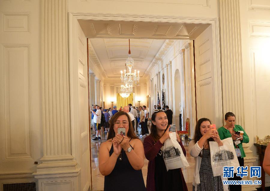 Tourists take photos during the White House Tour, July 1, 2015. (Xinhua/Yin Bo)