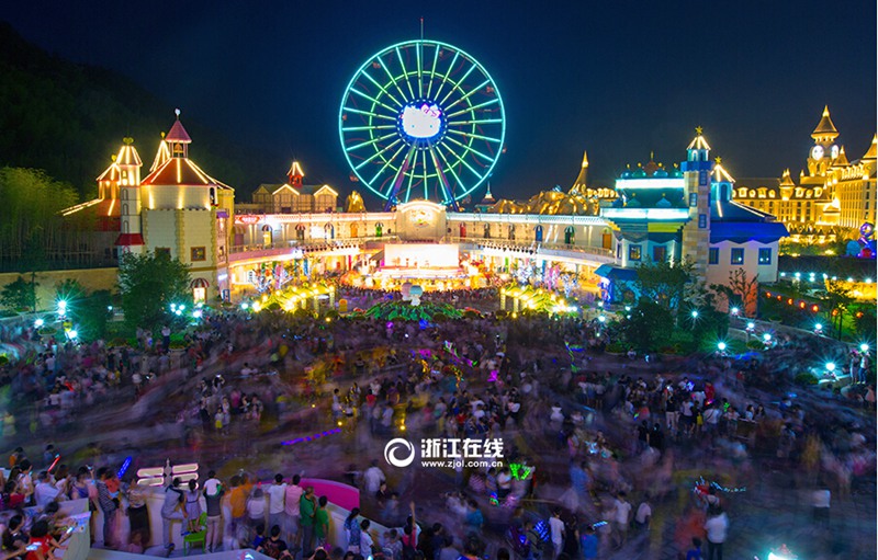 | Fireworks explode over the world's largest Hello Kitty Theme Park in Anji county, east China’s Zhejiang province on July 1, 2015. Fans were shocked to discover last year that she is not a cat, but a little girl. Now, the world’s most famous faux-feline friend, Hello Kitty, has rocked the world again, by opening the biggest ever theme park in China. (Photo/ zjol.com.cn) |