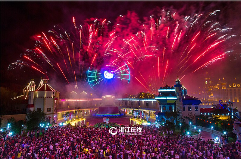 Fireworks explode over the world's largest Hello Kitty Theme Park in Anji county, east China’s Zhejiang province on July 1, 2015. Fans were shocked to discover last year that she is not a cat, but a little girl. Now, the world’s most famous faux-feline friend, Hello Kitty, has rocked the world again, by opening the biggest ever theme park in China. (Photo/ zjol.com.cn)