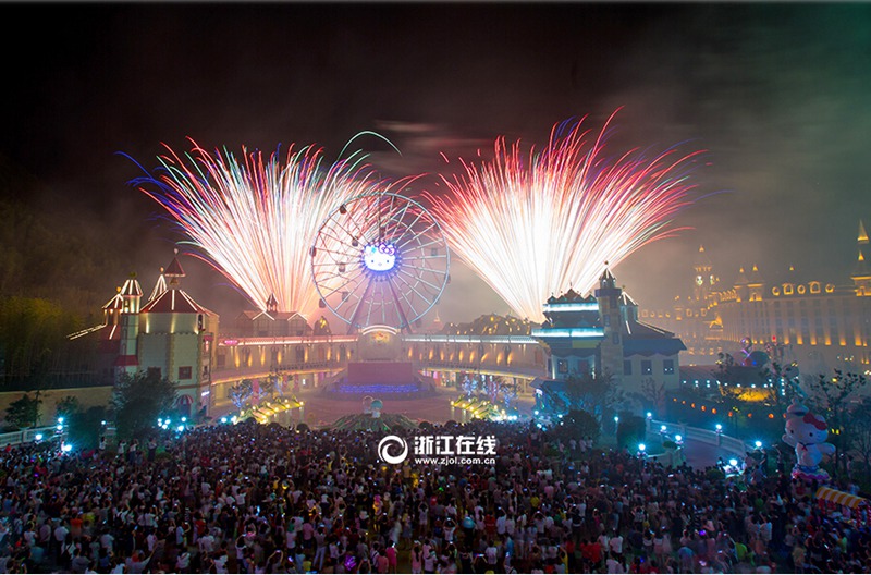Fireworks explode over the world's largest Hello Kitty Theme Park in Anji county, east China’s Zhejiang province on July 1, 2015. Fans were shocked to discover last year that she is not a cat, but a little girl. Now, the world’s most famous faux-feline friend, Hello Kitty, has rocked the world again, by opening the biggest ever theme park in China. (Photo/ zjol.com.cn)