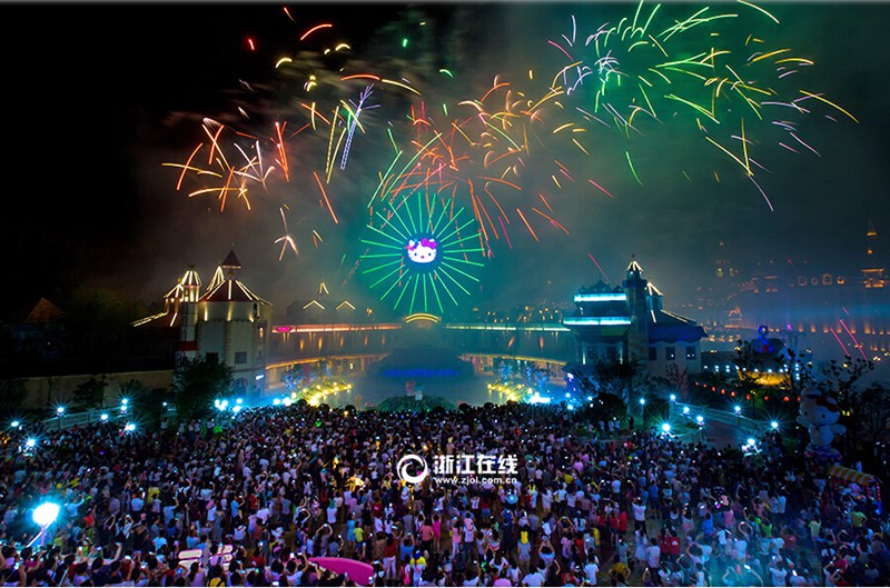 Fireworks explode over the world's largest Hello Kitty Theme Park in Anji county, east China’s Zhejiang province on July 1, 2015. Fans were shocked to discover last year that she is not a cat, but a little girl. Now, the world’s most famous faux-feline friend, Hello Kitty, has rocked the world again, by opening the biggest ever theme park in China. (Photo/ zjol.com.cn)