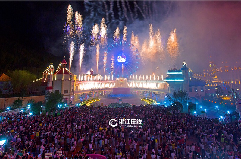 Fireworks explode over the world's largest Hello Kitty Theme Park in Anji county, east China’s Zhejiang province on July 1, 2015. Fans were shocked to discover last year that she is not a cat, but a little girl. Now, the world’s most famous faux-feline friend, Hello Kitty, has rocked the world again, by opening the biggest ever theme park in China. (Photo/ zjol.com.cn)