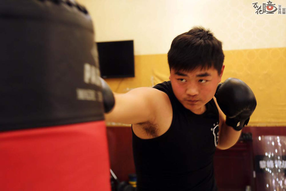 A bodyguard takes strength exercise in the training hall. (Photo/cq.cqnews.net)