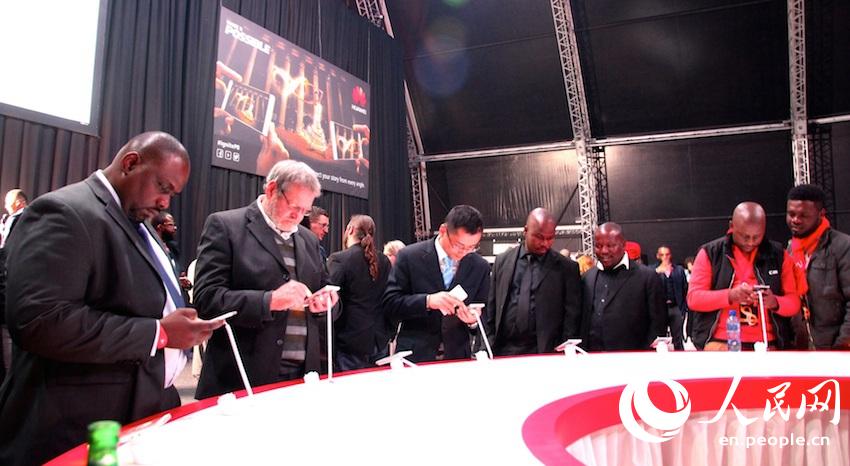 | Local South Africans try out the Huawei P8 at the launching ceremony in Johannesburg, South Africa. (Picture: People’s Daily Online / Zhang Jiexian) |