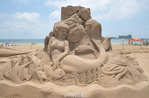 The western shores of Qingdao have featured the first annual Sand Carving Art Festival. The beaches are filled with popular cartoon characters like Mickey Mouse, mermaids, cars and Transformers.