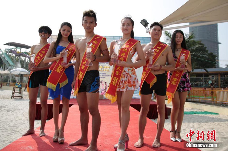 A high school girl and a college freshman win the first campus beauty contest held in Guangxi on July 19, 2015. In addition, the top six competitors were selected as image ambassadors of Nanning Zoo to help raise public’s awareness of protecting wild animals and safeguarding our planet. (CNS/ Wang Gang)
