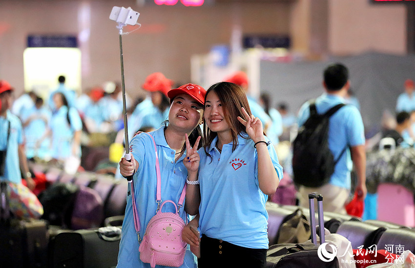 A total of 204 graduates from Henan University boarded on T197 train from Zhengzhou to Urumqi on July 21, which signifies that the 2015 college students volunteer program to support the development of China's western region was officially launched.(People's Daily Online Photo)
