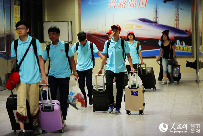 A total of 204 graduates from Henan University boarded on T197 train from Zhengzhou to Urumqi on July 21, which signifies that the 2015 college students volunteer program to support the development of China's western region was officially launched.(People's Daily Online Photo)