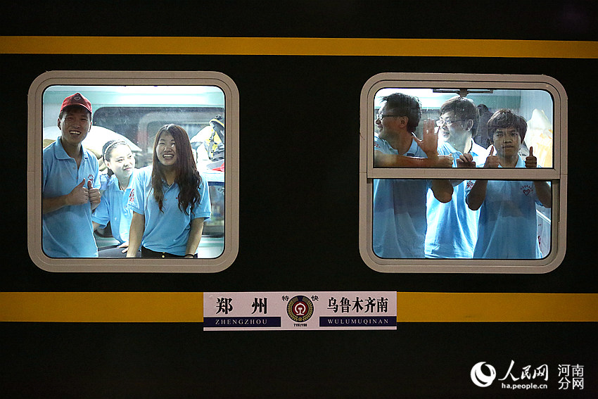 A total of 204 graduates from Henan University boarded on T197 train from Zhengzhou to Urumqi on July 21, which signifies that the 2015 college students volunteer program to support the development of China's western region was officially launched.(People's Daily Online Photo)