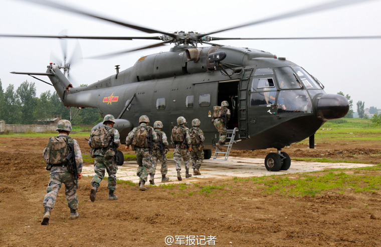 The air force, army aviation, armored force, special operations force of the PLA jointly conduct a live fire drill in east China’s Anhui province on July 27, 2015. (Photo/Weibo of PLA Daily’s reporters)