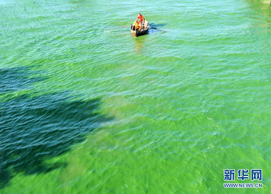 blue-green alga gather in parts of Chaohu Lake, Anhui province. (Photo by Xinhua News Agency/Yang Xiaoyuan)