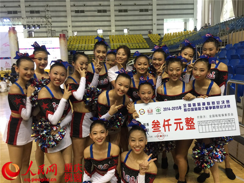 In the just-concluded 2015 China Cheerleading Finals, Chongqing cheerleading team composed of 16 young girls defeated other teams from 8 countries and won the championship. On behalf of China, they will go to Paris in this November to compete in the European Cheerleading Championships. (Photo/People's Daily Online)