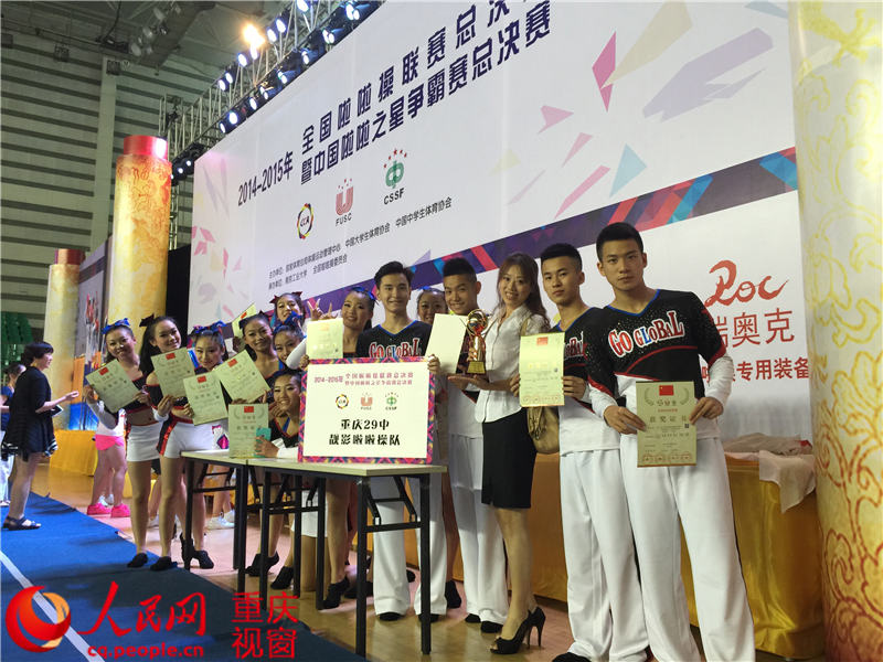 In the just-concluded 2015 China Cheerleading Finals, Chongqing cheerleading team composed of 16 young girls defeated other teams from 8 countries and won the championship. On behalf of China, they will go to Paris in this November to compete in the European Cheerleading Championships. (Photo/People's Daily Online)