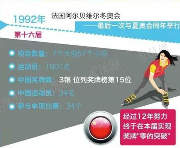 China's athletes won three silver medals in the 16th Olympic Winter Games, which was held in Albertville of France in 1992.