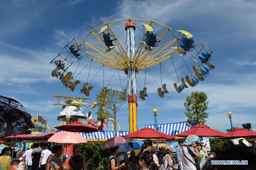 Tourists play at the Ocean Park in Hong Kong, south China, Aug. 2. 2015. (Xinhua/Qin Qing)