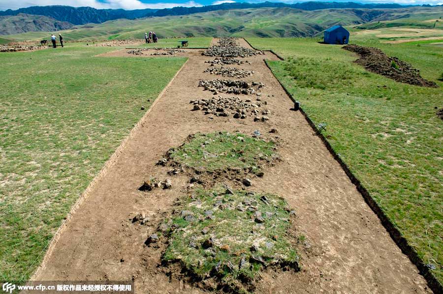 A group of large-scale tombs dating back 2,000 years were discovered recently in Mori Kazak Autonomous County, northwestern China's Xinjiang Uygur Autonomous Region by an archaeological team under Chinese Academy of Social Science. According to preliminary study, they might be tombs of Qin and Han Dynasties. Among the more than 100 tombs, the largest one is 70 meters in diameter and 9 meters in height. They are surrounded with huge rocks and mounds. It might be a tomb of a nobleman of the prairie tribe in eastern Tianshan Mountain.(CFP Photo)