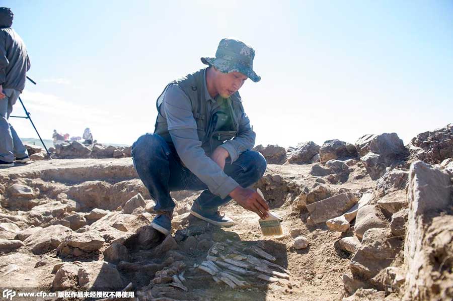 | A group of large-scale tombs dating back 2,000 years were discovered recently in Mori Kazak Autonomous County, northwestern China's Xinjiang Uygur Autonomous Region by an archaeological team under Chinese Academy of Social Science. According to preliminary study, they might be tombs of Qin and Han Dynasties. Among the more than 100 tombs, the largest one is 70 meters in diameter and 9 meters in height. They are surrounded with huge rocks and mounds. It might be a tomb of a nobleman of the prairie tribe in eastern Tianshan Mountain.(CFP Photo) |